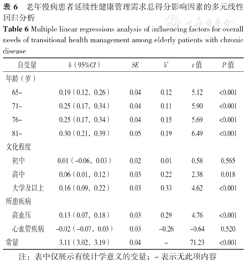 Multiple linear regressions analysis of influencing factors for overall needs of transitional health management among elderly patients with chronic disease