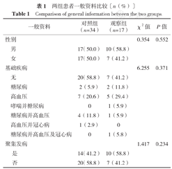 | 糖尿病并高血压 | 4(11.8) | 1(5.9) | |||