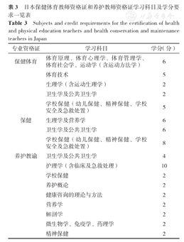 日本保健体育教师资格证和养护教师资格证学习科目及学分要求一览表