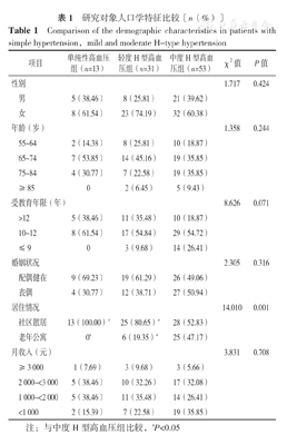 Comparison of the demographic characteristics in patients with simple hypertension,mild and moderate H-type hypertension