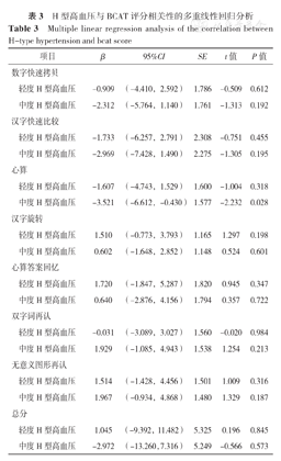 H型高血压与BCAT评分相关性的多重线性回归分析