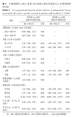 Ⅰ期局限性ccRCC患者CSS的独立预后因素的Cox比例风险模型分析