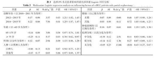 Multivariate Logistic regression analysis on influencing factors of ccRCC patients with partial nephrectomy