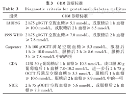 | Carpenter | 3 h 100 gOGTT满足空腹血糖≥5.3 mmol/L、服糖后1 h≥10.0 mmol/L、服糖后2 h≥8.6 mmol/L、服糖后3 h≥7.8 mmol/L中的两项 |