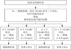 结合YEARS评分三个项目的有无和D-二聚体的两个阈值,可用于判断可疑肺栓塞患者是否需要CTPA检查和排除临床可疑的肺栓塞,从而减少不必要的CTPA检查。YEARS评分还可以节约肺栓塞疑似患者在急诊就诊时间,使肺栓塞患者得到早诊断和治疗。长期随访研究证实了YEARS评分未使血栓事件的发生率增加,进一步说明了该方法简单、安全、有效。而且YEARS评分可在整个妊娠期间安全的排除肺栓塞,有效避免可疑肺栓塞妊娠患者接受CTPA检查。