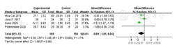 共4篇[12,14,16,18]文献分析IF对成年肥胖患者FFM的影响,各文献间存在统计学异质性(I2=77%,P=0.004),采用随机效应模型进行Meta分析,结果显示,试验组和对照组FFM比较,差异无统计学意义〔MD=-0.89,95%CI(-1.81,0.04),P=0.06〕,见图5。