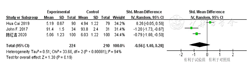 | 无脂肪量 | 4 | 随机对照试验 | 严重a | 严重b | 无严重换行间接性 | 严重c | 无 | 169 | 150 | - | 1.25(1.55,0.96) | 极低 | 极重要 |