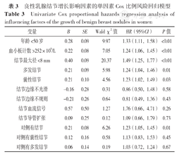 良性乳腺结节增长影响因素的多因素Cox比例风险回归模型
