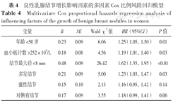 Multivariate Cox proportional hazards regression analysis of influencing factors of the growth of benign breast nodules in women
