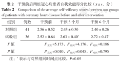 Comparison of the average self-efficacy scores between two groups of patients with coronary heart disease before and after intervention