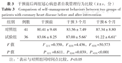 Comparison of self-management behaviors between two groups of patients with coronary heart disease before and after intervention
