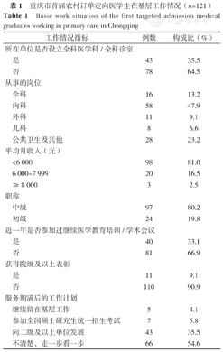 Basic work situation of the first targeted admission medical graduates working in primary care in Chongqing