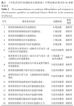 16 recommendations on syndrome differentiation and treatment in clinical practice guideline on traditional Chinese Medicine in the treatment of influenza
