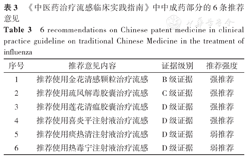 《中医药治疗流感临床实践指南》中中成药部分的6条推荐意见