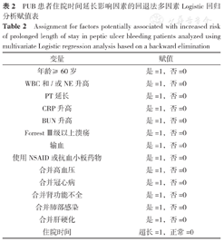 PUB患者住院时间延长影响因素的回退法多因素Logistic回归分析赋值表