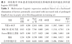 训练集中PUB患者住院时间延长影响因素的回退法多因素Logistic回归分析