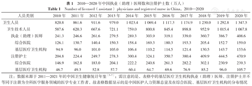 Number of licensed(assistant) physicians and registered nurse in China,2010—2020