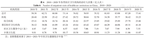 Number of outpatient visits of healthcare institutions in China,2010—2020