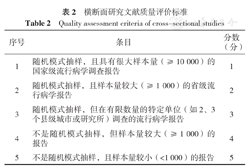 横断面研究采用KHAMBALIA等[14]提出的文献质量评价标准进行质量评分,见表2。