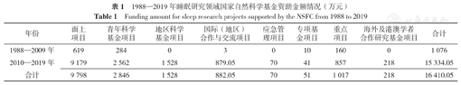 1988—2019年睡眠研究领域国家自然科学基金立项数量和资助金额汇总