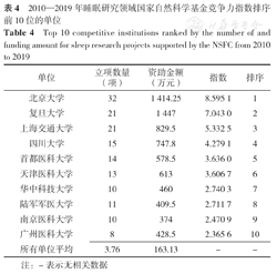 2010—2019年睡眠研究领域国家自然科学基金竞争力指数排序前10位的单位