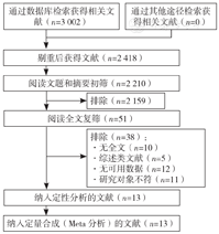 采用RevMan 5.4和Stata 12.0软件进行Meta分析。计量资料采用标准化均数差(SMD)为效应指标,各效应量均给出其点估计值和95%CI。纳入研究结果间的异质性采用χ2检验进行分析(检验水准α=0.1),同时结合I2定量判断异质性的大小。若I2<50%,P≥0.1,表示纳入研究间的异质性较小,采用固定效应模型进行Meta分析;若I2≥50%,P<0.1,表示研究间的异质性较大,需进一步分析异质性来源,在排除明显临床异质性后,采用随机效应模型进行Meta分析。明显的临床异质性采用亚组分析或敏感性分析等方法进行处理,或只行描述性分析。通过漏斗图、Begg's和Egger's检验评估发表偏倚。以P≤0.05为差异有统计学意义。