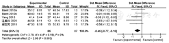 4篇文献[9,17,23,26]采用RRS评价了ABM对抑郁患者冗思反应的影响,共纳入患者173例,其中试验组86例,对照组87例。各研究间不存在异质性(I2=0%),采用固定效应模型进行Meta分析,结果显示,试验组RRS评分较对照组降低,差异有统计学意义〔SMD=-0.46,95%CI(-0.77,-0.16),P=0.003〕,见图7。