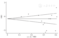 本研究对治疗后抑郁评分这一结局指标进行Begg's和Egger's检验,P值分别为0.661和0.144,提示存在发表偏倚的可能性较小(图8)。