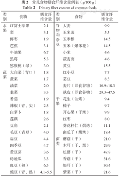 《中国居民膳食指南》[24]建议正常成年人每天摄入膳食纤维25~30 g。大多数欧洲国家以及澳大利亚、新西兰、美国等推荐膳食纤维摄入:男性30~35 g/d、女性25~32 g/d[25]。多项研究显示健康人群日常膳食纤维摄入低于这一推荐。2011—2012年美国人群总膳食纤维摄入量为18.3 g/d,2009—2012年英国为13.6 g/d,2006—2007年法国为16.9 g/d,2008年澳大利亚为20 g/d[25],且2002年芬兰女性低于18 g/d[26]。2015年我国成年居民不溶性膳食纤维摄入量平均为12.2 g/d,总膳食纤维摄入量平均为18.5 g/d,约1/2人群膳食摄入为适宜摄入量的40%~79%[27]。