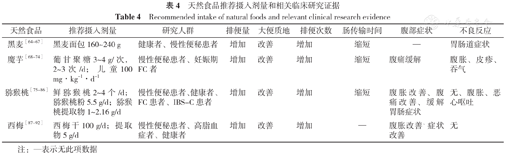 | 天然食品 | 推荐摄入剂量 | 研究人群 | 排便量 | 大便质地 | 排便次数 | 肠传输时间 | 腹部症状 | 不良反应 |