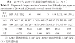Colposcopic biopsy results of women from Shihezi urban areas as participants of 2019 and 2020 yearly cervical cancer screenings