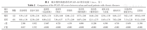 Comparison of the PCAT-AS scores between urban and rural patients with chronic diseases