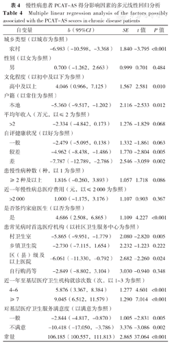 慢性病患者PCAT-AS得分影响因素的多元线性回归分析