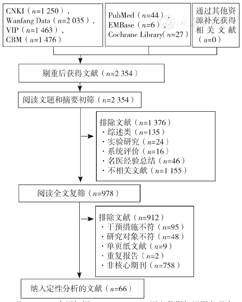 初步检索出相关文献6 301篇,经逐层筛选,最终纳入RCT 66篇[12,13,14,15,16,17,18,19,20,21,22,23,24,25,26,27,28,29,30,31,32,33,34,35,36,37,38,39,40,41,42,43,44,45,46,47,48,49,50,51,52,53,54,55,56,57,58,59,60,61,62,63,64,65,66,67,68,69,70,71,72,73,74,75,76,77]。文献筛选流程及结果见图1。