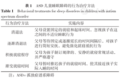 AAN指南指出,对于5岁及以下的ASD儿童,改善睡眠习惯的行为疗法包括消退法、逐渐消退法、积极就寝程序和渐变就寝时间(表1)[10],同时指出针对成人的认知行为疗法(CBT)经调整后也适用于年龄较大的儿童。ATN共识系统回顾支持消退法、积极强化法和父母教育对ASD儿童失眠的治疗效果。AAN指南指出,ASD儿童青少年的行为干预通常是短期、多成分、以目标为导向的,旨在改变导致其睡眠障碍的思维方式和行为。