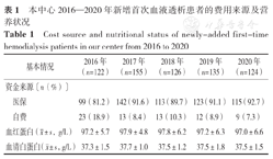 Cost source and nutritional status of newly-added first-time hemodialysis patients in our center from 2016 to 2020