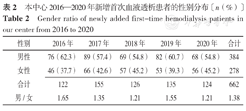 本中心2016—2020年新增首次血液透析患者的性别分布〔n(%)〕