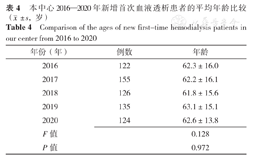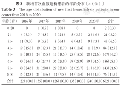 Comparison of the ages of new first-time hemodialysis patients in our center from 2016 to 2020
