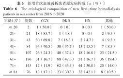 The etiological composition of new first-time hemodialysis patients in our center from 2016 to 2020