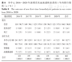 The outcome of new first-time hemodialysis patients in our center from 2016 to 2020