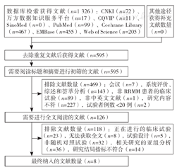 (1)重复的研究报道;(2)相关数据不完整、不清晰,不能提取有效数据,研究设计不合理的文献;(3)非RCT,综述和病例报告类文献;(4)纳入患者<20例的研究;(5)关于基础以及动物试验的研究;(6)无相关结局指标的文献。