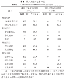 纳入标准:(1)关于我国订单定向项目或国外订单定向项目的原始研究;(2)语种为中文或英文。排除标准:(1)综述性文献,或者会议、专利、毕业论文等;(2)不能获得全文的文献;(3)毕业后不要求合同服务的国外基层医生培养项目相关研究。