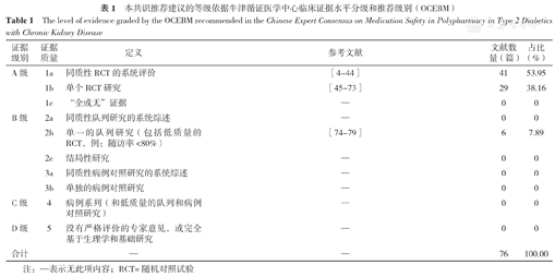 The level of evidence graded by the OCEBM recommended in the Chinese Expert Consensus on Medication Safety in Polypharmacy in Type 2 Diabetics with Chronic Kidney Disease