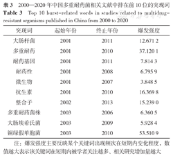2000—2020年中国多重耐药菌相关文献中排在前10位的突现词