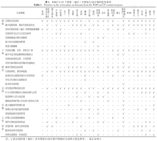 注:√表示该国家(地区)在失智症行动计划中将相应行动列入优先事项,-表示未列入