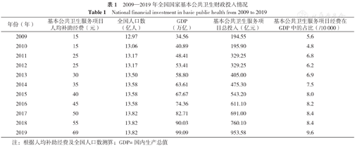 National financial investment in basic public health from 2009 to 2019