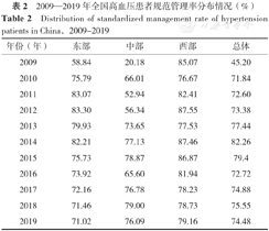 Distribution of standardized management rate of hypertension patients in China,2009-2019