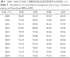 Distribution of standardized management rate of type 2 diabetes patients in China from 2009 to 2019