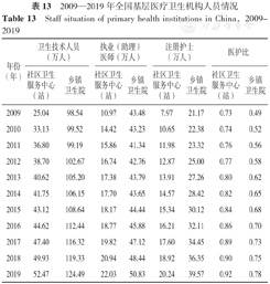 Staff situation of primary health institutions in China,2009-2019