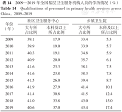 Qualifications of personnel in primary health services across China,2009-2019